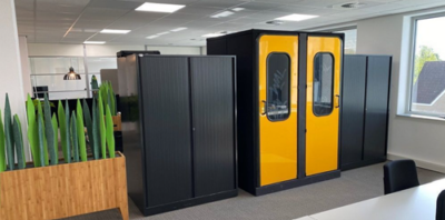 De wanden van de stiltewerkplek zijn gemaakt van eurolight platen, die gevuld worden met 10 mm schuim aan beide kanten. Vervolgens worden dit gestoffeerd in een kleur naar keuze voor een akoestische werking. De stiltewerkplek is aan de binnenkant voorzien van akoestisch materiaal van Cyclin, waardoor je ongestoord kunt bellen. Een uniek product, met een verhaal!